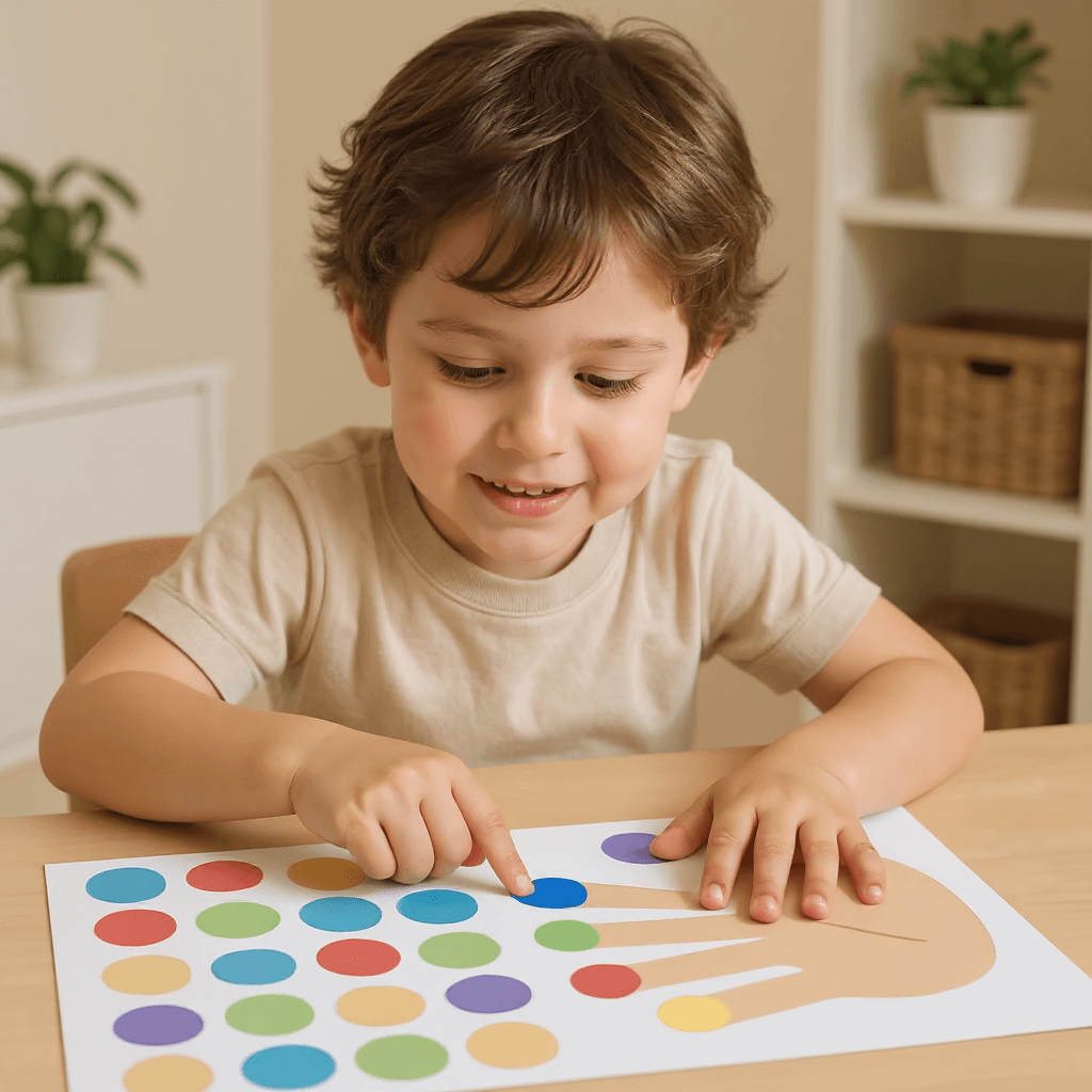 Comenzamos con actividades de rastreo visual que literalmente "reinician" los patrones caóticos del cerebro TDAH. Como desfragmentar una computadora, pero para el cerebro de tu hijo.